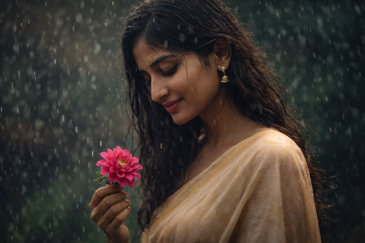 She likes walking in the rain, and somehow the rain feels lucky because it gets to touch her without asking. She likes flowers, but she doesn’t know she herself is like one, soft, natural, unaware of her own beauty.
